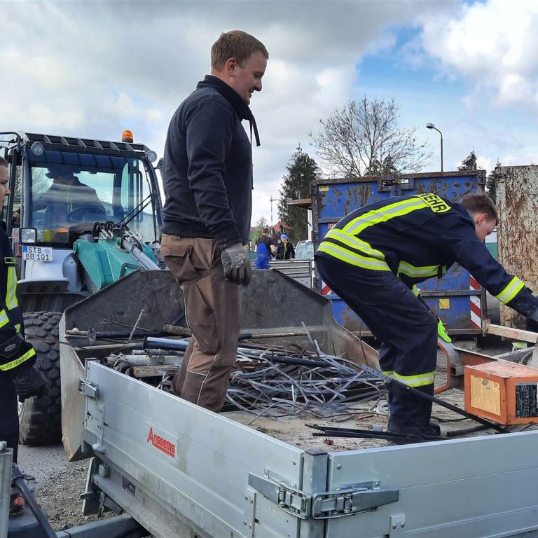 08.05.2021 - Bunt für Brüel . Die Sammelaktion für die Erneuerung der Spielplätze hat einen neuen Höhepunkt gefunden. Ursprünglich zaghaft haben wir einen Container bestellt. Bauer Korl und Elektronikhaus Westphal haben einen allein gefüllt. Voranmeldungen haben uns bewegt, einen zweiten zu ordern. Und die waren dann am Freitag Abend bereits beide voll. Anruf beim Schrotthändler - und er lieferte prompt noch zwei neue am Samstag Morgen. Alle zusammen - Die Feuerwehr, Jugendfeuerwehr, Bauhof und der Sozialausschuss - der Initiator dieser Aktion haben Schlussendlich zu ganzen 5 vollen Containern geführt. Vielen Dank an die Brüeler und die Betriebe für die Bereitschaft, sich von ihrem Schrott zu trennen und auf dass unsere Spielplätze bunter werden.