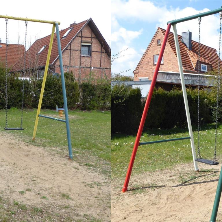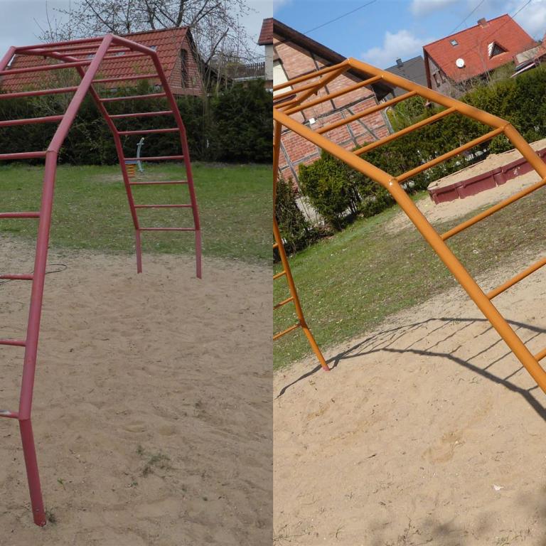 Ich würde sagen - das war ein erfolgreicher Samstag. Vielen Dank an Christian Bukow, Stefanie Krüger, Maurice Funke und dem kleinen Leon für die Mithilfe auf dem Spielplatz in der Siedlung. Danke auch an Sebastian Buttler für die Farbe und dem Bürgermeister für die Getränke. Ein kleiner Wehmutstropfen allerdings bleibt, denn bei so vielen Brüelern, so vielen, die sich gern kritisch über das eine oder andere äußern, waren doch noch einige Pinsel übrig. Aber bestimmt beim nächsten Mal - oder?