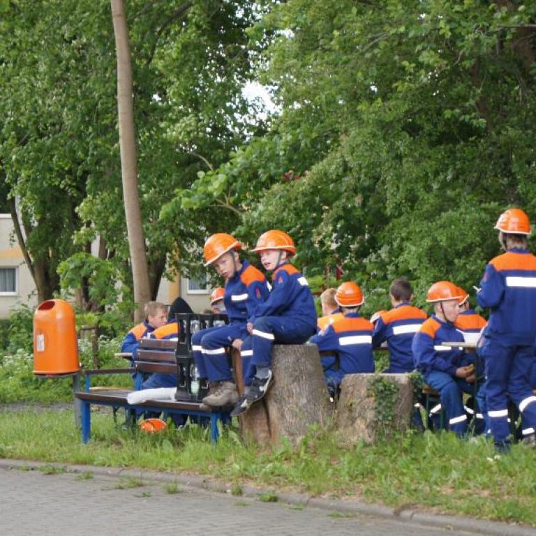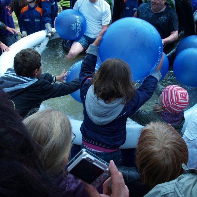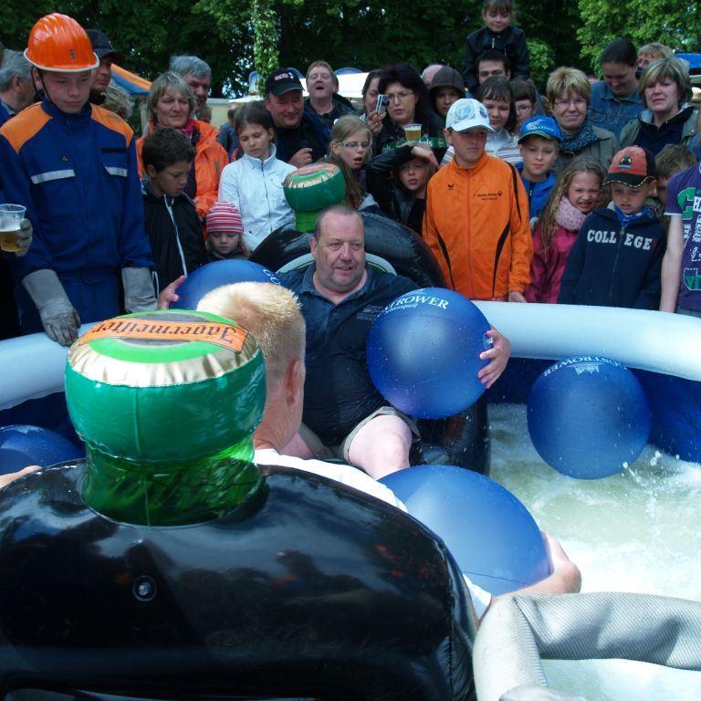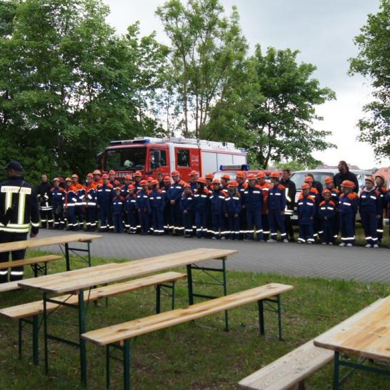 Der Grund war eine Wette zwischen der Stadt Brüel und der Jugendfeuerwehr des Ortes. Die Stadtvertreter glaubten nicht, dass es möglich ist Wasser aus dem Roten See bis zum Vogelstangenberg zu fördern. Das ist eine Strecke von 1,8km. Natürlich ließen die Jugendfeuerwehren des Amtes und der Umgebung die Brüeler Kameraden nicht allein und arbeiteten gemeinsam an der Erfüllung des Ziels. Bis zum Schluss war der Ausgang der Wette unklar. Mehrere Schläuche platzten und mussten schnellstmöglich, durch bereitgelegte Reserve, getauscht werden. Punkt 14:30 Uhr kam der Funkspruch: "Wir haben die Wette gewonnen!!!". Insgesamt 65 Jugendfeuerwehrleute und deren Ausbilder freuten sich über die erbrachte Leistung, denn durch den Sieg kamen durch Sponsoren rund 800,- Euro für ein neues Spielgerät für den Spielplatz vor der Schule zusammen.