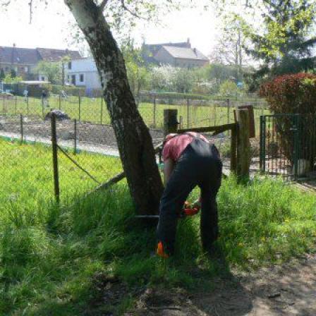 Am Vortag zum 1. Mai begannen Mitarbeiter der bauausführenden Firma Goldberger Tief- und Wasserbau GmbH mit den Arbeiten im Dornensteig. Ihre erste Aufgabe bestand darin, den Dornensteig linksseitig von seinem schmückenden Birkenbestand zu beräumen. Deren Wurzeln sind unter anderem Schuld daran, dass das Oberflächenwasser aus dem Dornensteig sowie dem Wipersdorfer Weg nicht mehr ungehindert zum Mühlenbach abfließen konnte. Zu sehr haben die Wurzeln die alten Betonrohre durchdrungen und massiv geschädigt.