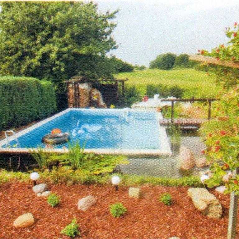 Bei schönem Wetter laden der Pool und die Liegewiese zum Relaxen ein. Der eigene Angelsteg wartet bei jedem Wetter auf seine Nutzung.
