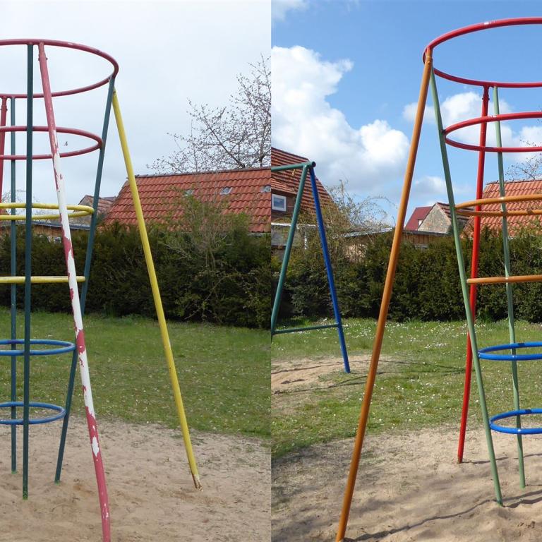 Ich würde sagen - das war ein erfolgreicher Samstag. Vielen Dank an Christian Bukow, Stefanie Krüger, Maurice Funke und dem kleinen Leon für die Mithilfe auf dem Spielplatz in der Siedlung. Danke auch an Sebastian Buttler für die Farbe und dem Bürgermeister für die Getränke. Ein kleiner Wehmutstropfen allerdings bleibt, denn bei so vielen Brüelern, so vielen, die sich gern kritisch über das eine oder andere äußern, waren doch noch einige Pinsel übrig. Aber bestimmt beim nächsten Mal - oder?