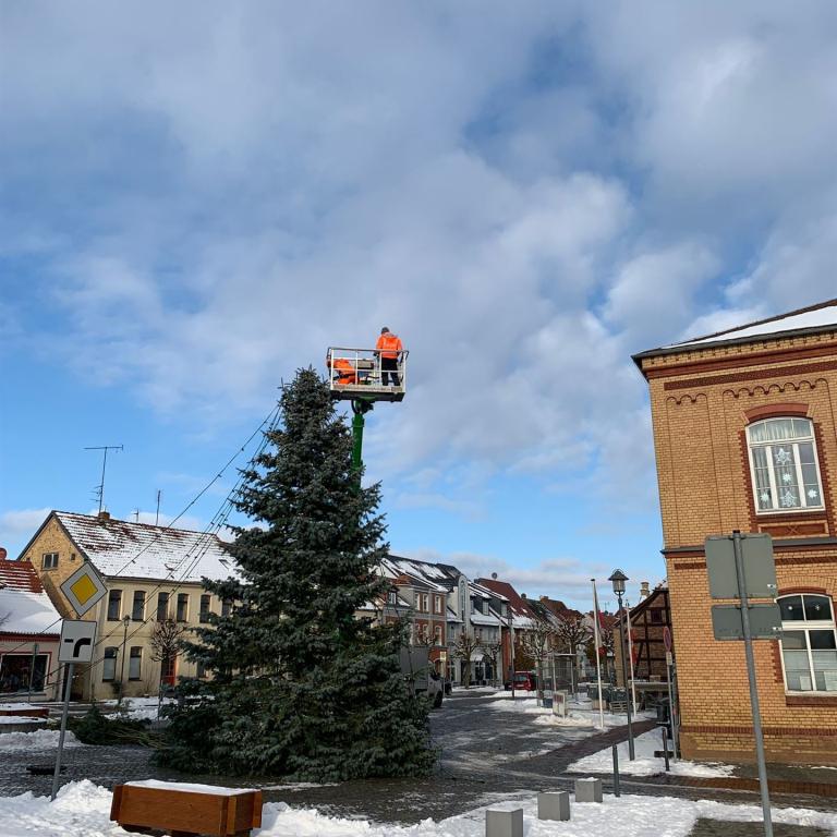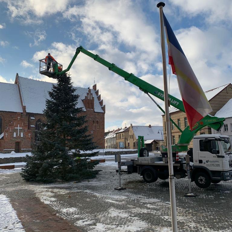 Unser Tannenbaum in Brüel hat es leider nicht mehr ins Amtsblatt geschafft, er wurde einen Tag nach Redaktionsschluss aufgestellt. Daher einige Informationen auf diesem Kanal. Der Baum stammt aus Golchen von Fam. Bernau und kräftige Unterstützung beim holen und aufstellen hatten wir von der Firma Hasselbring, von der Firma Dummer Arbeitsbühnen und vielen Dank natürlich unseren Mitarbeitern vom Bauhof Herrn Bredefeld, Herrn Ritter, Herrn Manthei und Christian Scholz.