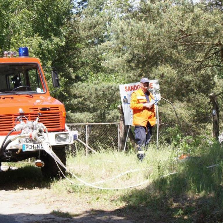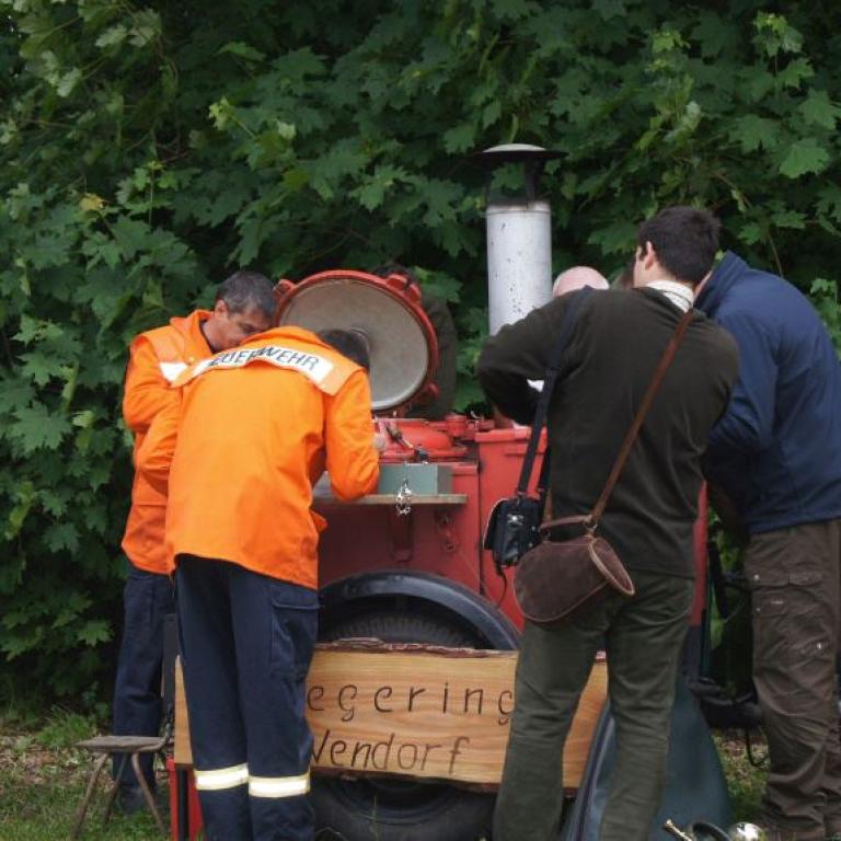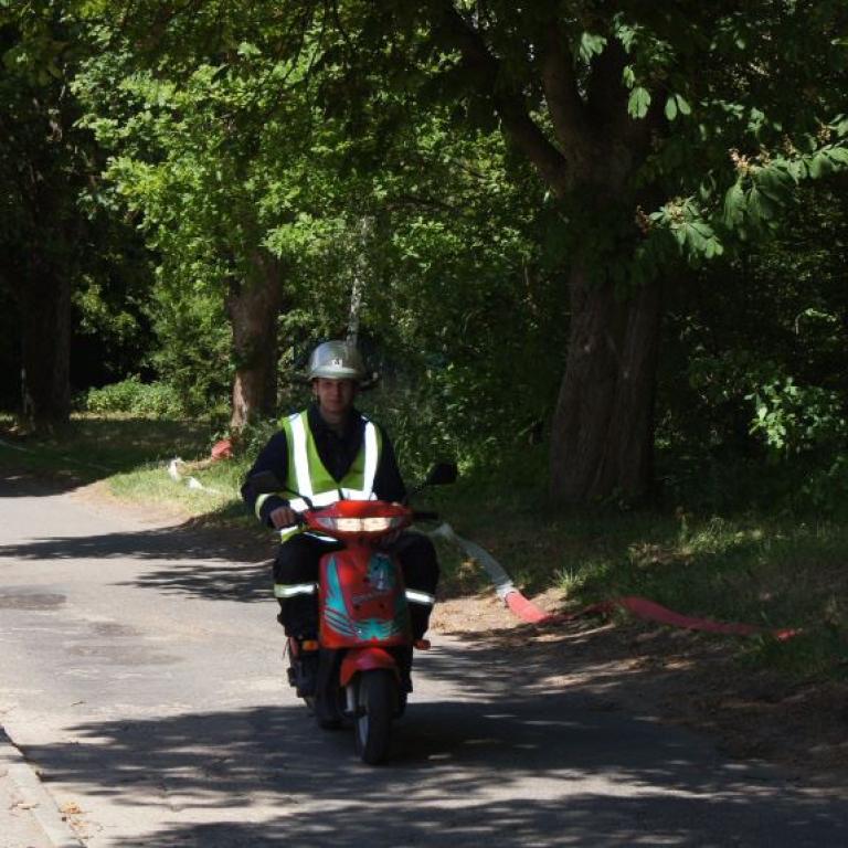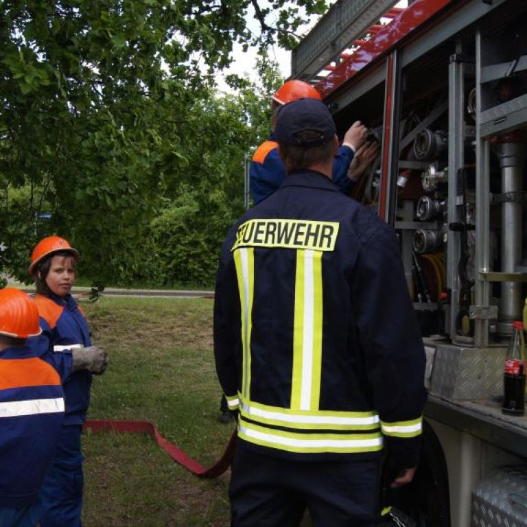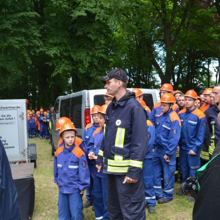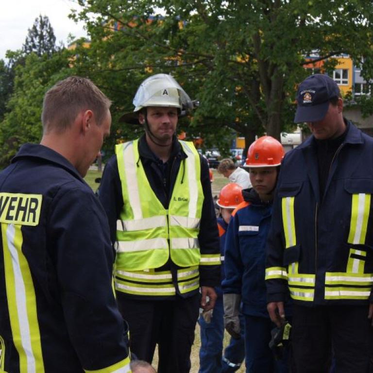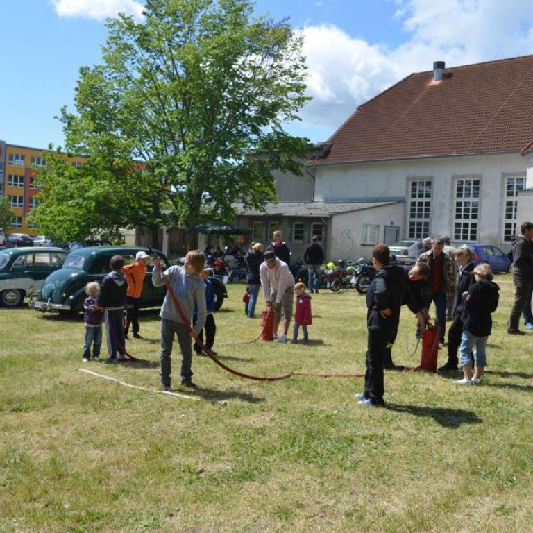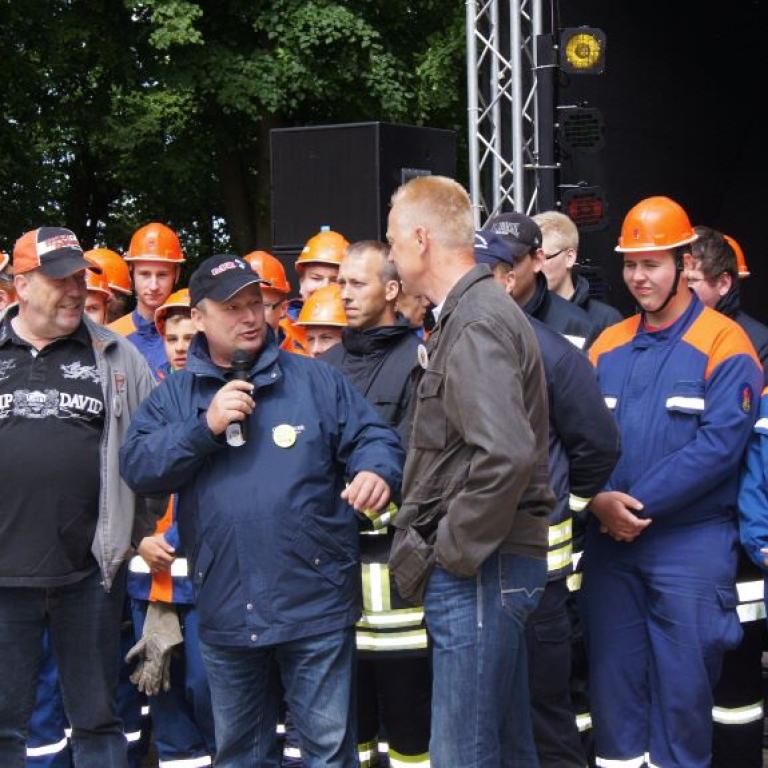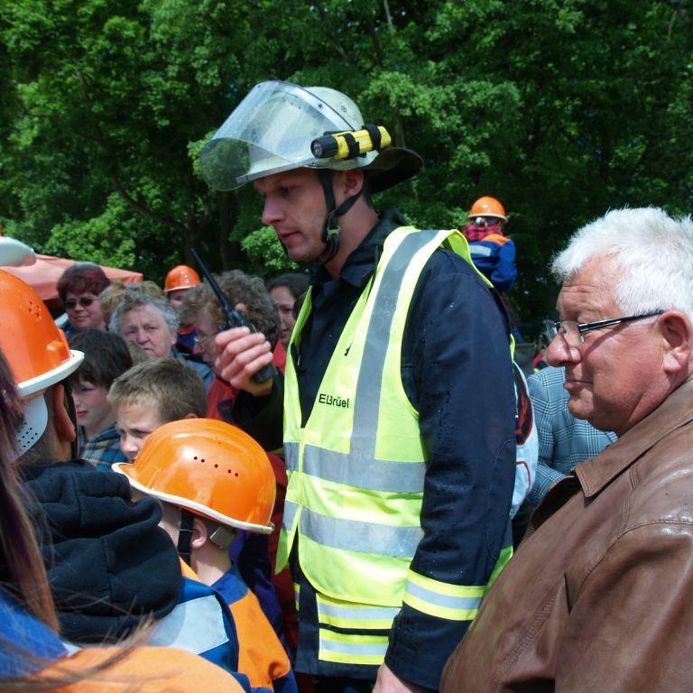 Der Grund war eine Wette zwischen der Stadt Brüel und der Jugendfeuerwehr des Ortes. Die Stadtvertreter glaubten nicht, dass es möglich ist Wasser aus dem Roten See bis zum Vogelstangenberg zu fördern. Das ist eine Strecke von 1,8km. Natürlich ließen die Jugendfeuerwehren des Amtes und der Umgebung die Brüeler Kameraden nicht allein und arbeiteten gemeinsam an der Erfüllung des Ziels. Bis zum Schluss war der Ausgang der Wette unklar. Mehrere Schläuche platzten und mussten schnellstmöglich, durch bereitgelegte Reserve, getauscht werden. Punkt 14:30 Uhr kam der Funkspruch: "Wir haben die Wette gewonnen!!!". Insgesamt 65 Jugendfeuerwehrleute und deren Ausbilder freuten sich über die erbrachte Leistung, denn durch den Sieg kamen durch Sponsoren rund 800,- Euro für ein neues Spielgerät für den Spielplatz vor der Schule zusammen.