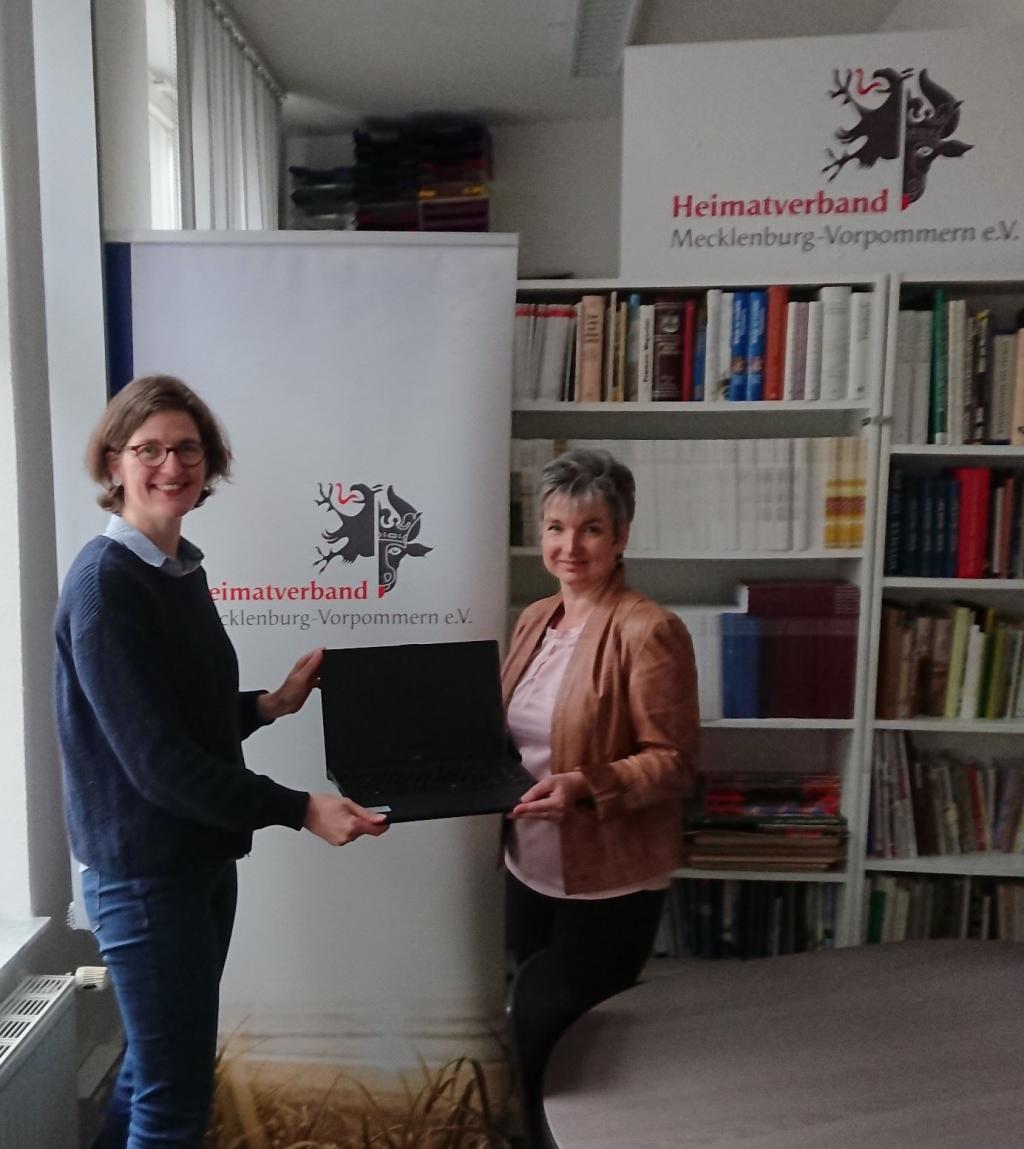 Freitag, der 13. Mai 2022 war für den Freundeskreis der Heimatstube Brüel ein Glückstag. Voller Freude und ein wenig aufgeregt konnte Verena Taubhorn als Vertreterin des Freundeskreises ein Laptop aus dem Programm „100 Laptops für 100 Heimatstuben – technische Grundausstattung für ehrenamtlich geführte Heimatmuseen“ entgegennehmen. In den Geschäftsräumen des Heimatverbandes Mecklenburg-Vorpommern e.V. übergab Büroleiterin Anne-Christin Boll das nagelneue Gerät mit komplettem Zubehör und schon gleich sprudelten die Ideen bei Beiden in Bezug auf Digitalisierung, Archivierung und PR-Arbeit in meist ehrenamtlich geführten Heimatstuben. Der Freundeskreis der Heimatstube Brüel bedankt sich herzlich für diese tolle Unterstützung und wird nun mit der Katalogisierung und Archivierung der in der Heimatstube aufbewahrten Materialien beginnen.