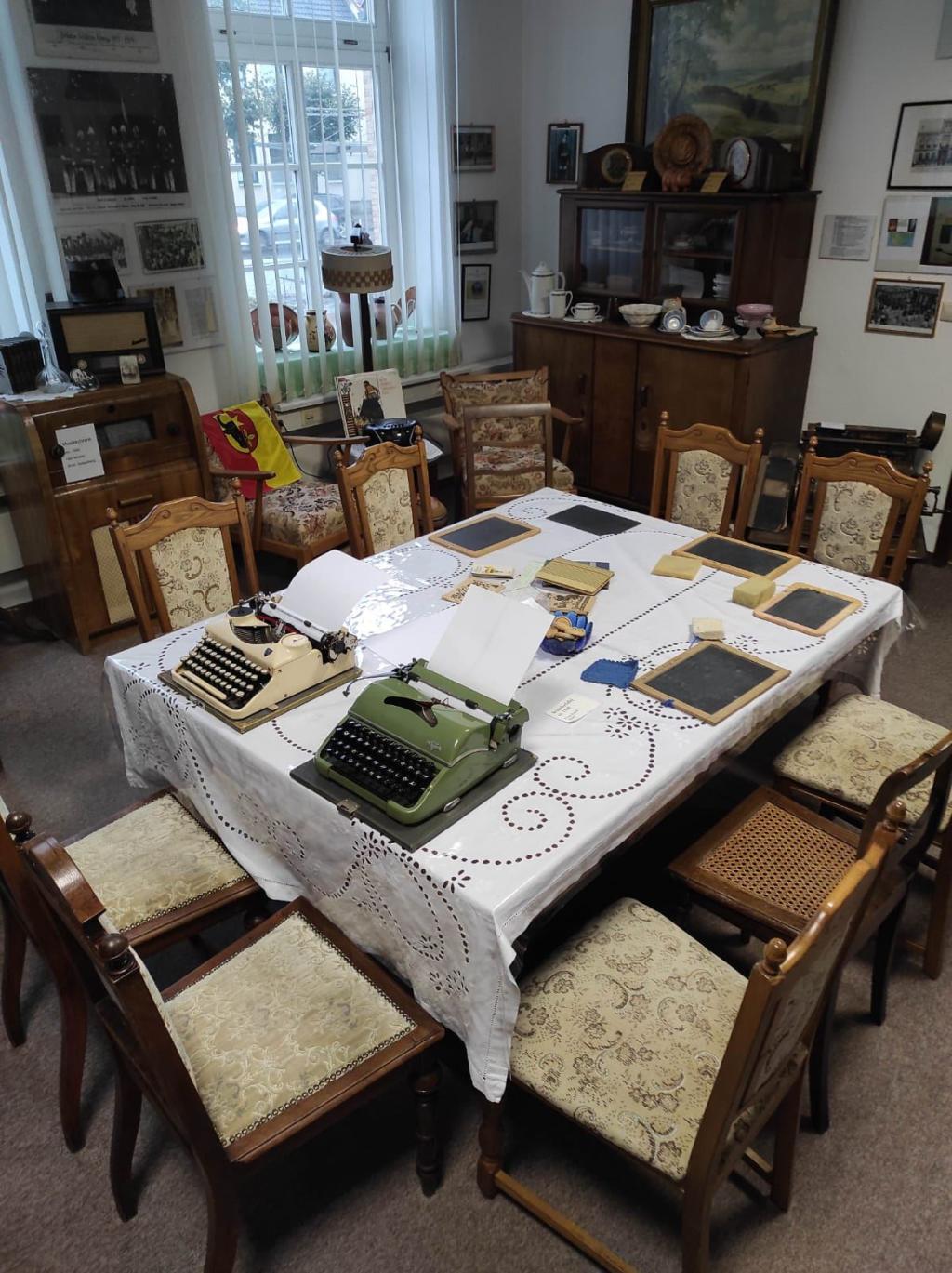Regelmäßig besuchen uns Schulklassen und erleben mit einem vom Freundeskreis erstellten Konzept die Zeit, in der ihre Uromas und Uropas lebten und arbeiteten. So üben die Kinder das Schreiben mit Griffeln auf der Schiefertafel, mit einer alten Schreibmaschine oder sogar die altdeutsche Schrift. In einem Bilderrätsel können alte Gegenstände erraten werden und staunende Gesichter zeigen uns, wie wichtig der Erhalt dieser Ausstellungsstücke ist.